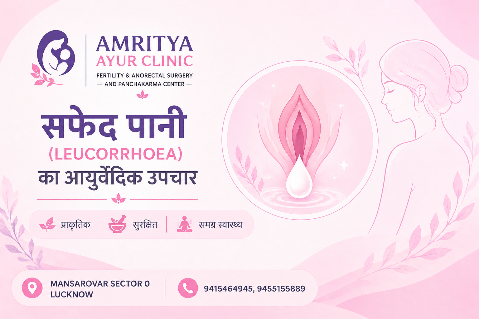 सफेद पानी (Leucorrhoea) के आयुर्वेदिक उपचार हेतु Amritya Ayur Clinic Lucknow से परामर्श लें।
