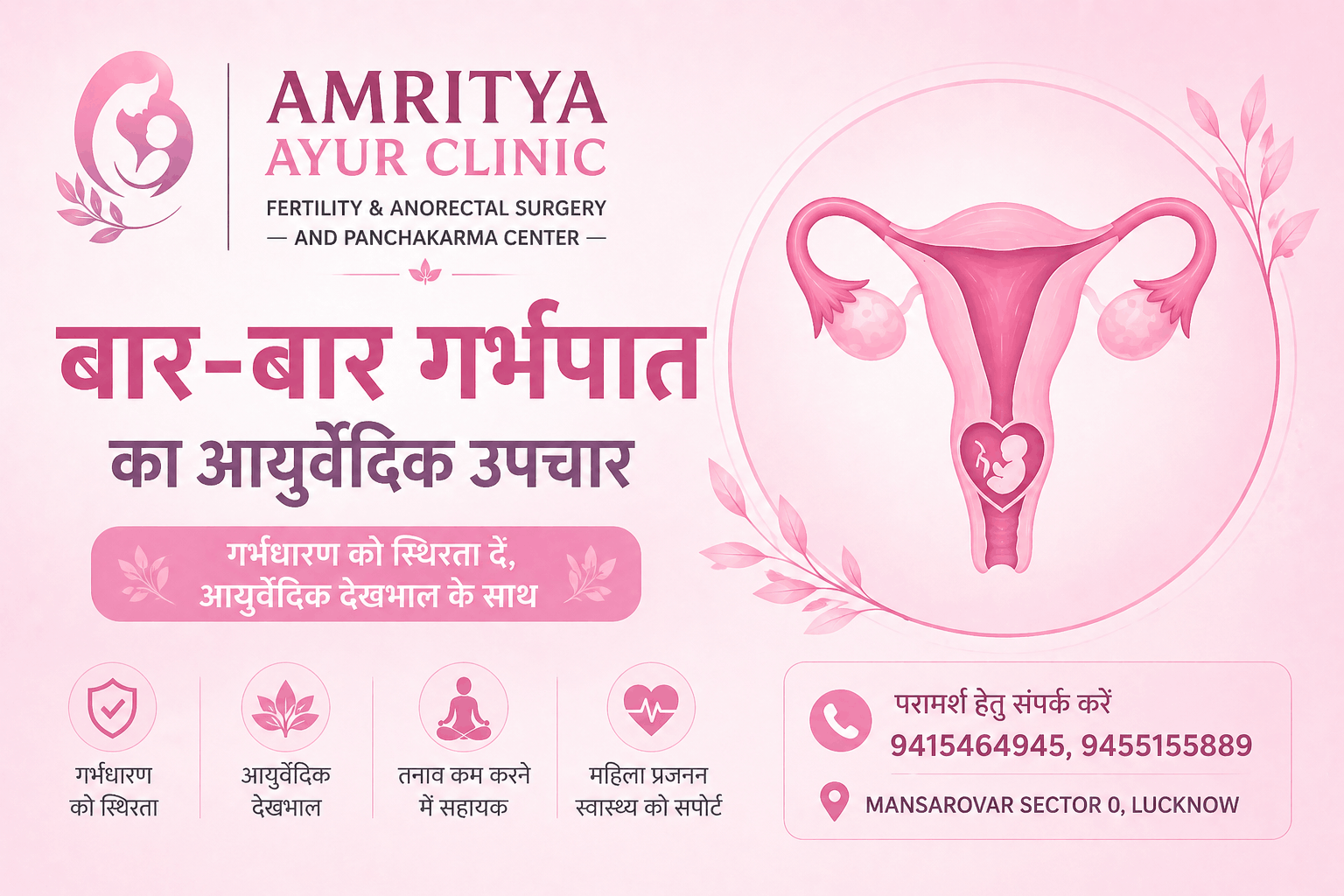 Repeated Miscarriage support हेतु Amritya Ayur Clinic Lucknow में परामर्श लें।