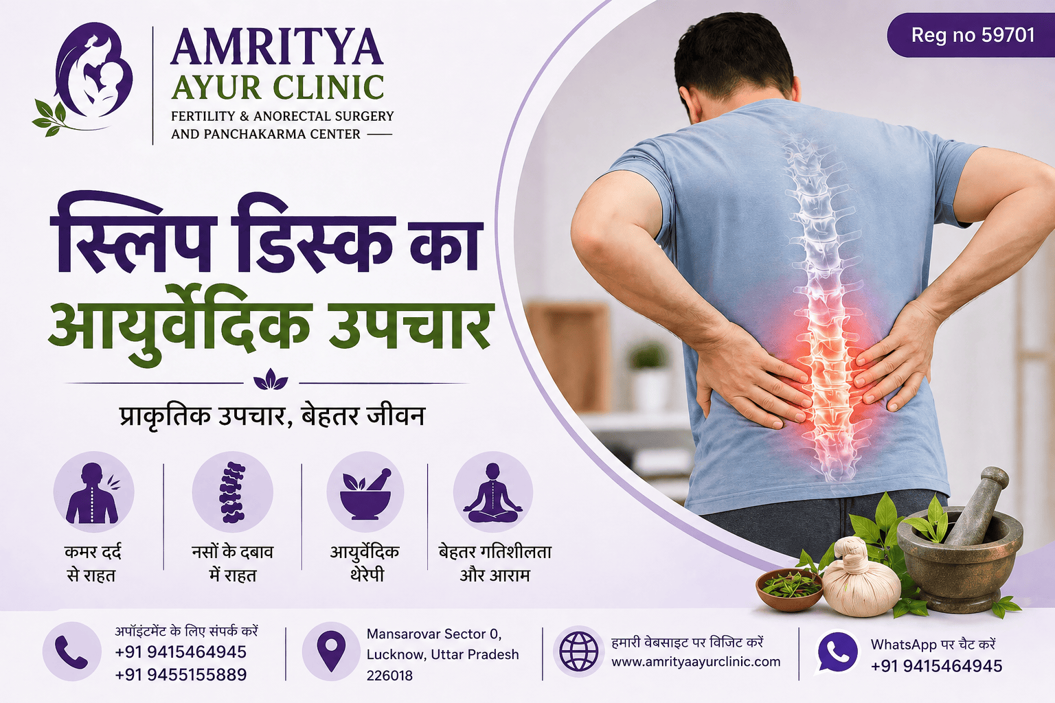 स्लिप डिस्क, lumbar pain और nerve compression के लिए आयुर्वेदिक उपचार एवं पंचकर्म support – Amritya Ayur Clinic Lucknow.